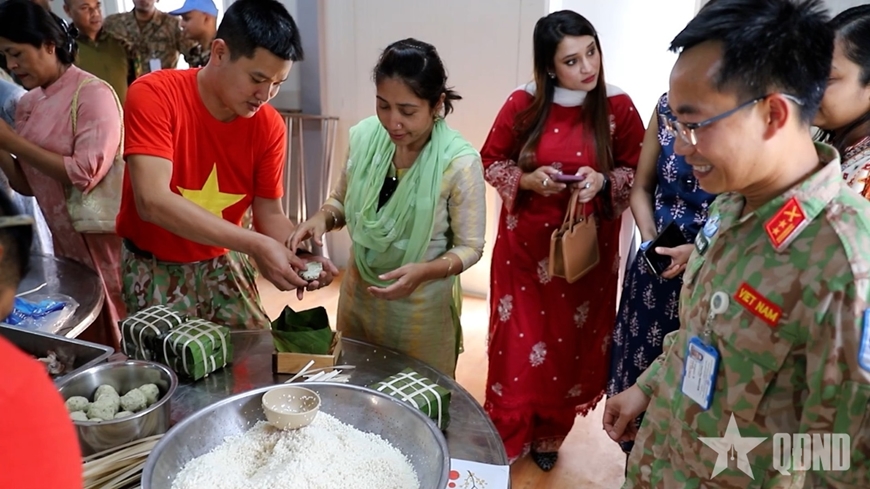 Một kỷ niệm khó quên là trong đêm Giao thừa, các cán bộ, chiến sĩ cùng nhau cắt bánh chưng, bánh tét, chia sẻ với bạn bè quốc tế những câu chuyện, phong tục tập quán truyền thống của dân tộc Việt Nam. Dù nguyên liệu hạn chế, nhưng bằng tình yêu quê hương và sự sáng tạo, những chiếc bánh vẫn mang trọn hương vị Tết. Khoảnh khắc ấy, tất cả như được trở về quê nhà, cảm nhận sự sum vầy thiêng liêng của ngày đầu năm mới.