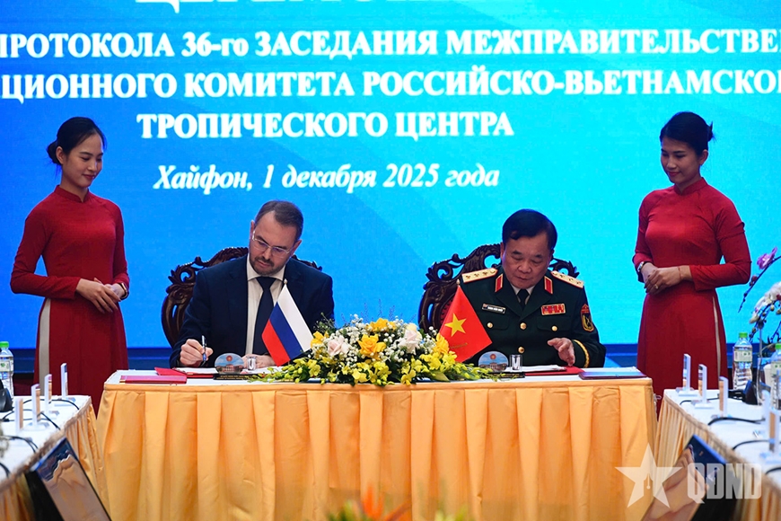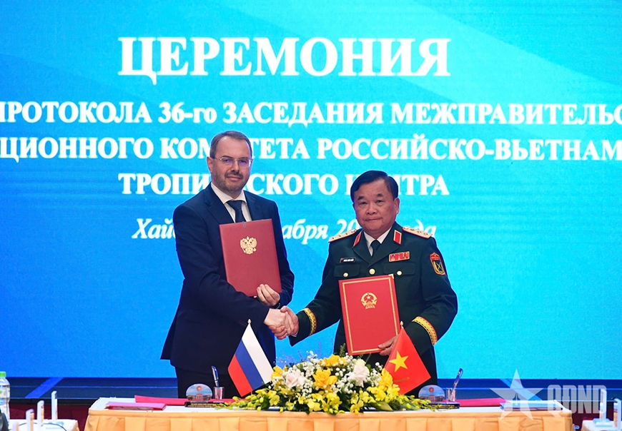 * Kết thúc phiên họp, hai đồng Chủ tịch UBPH đã ký Biên bản phiên họp và Biên bản sửa đổi, bổ sung Quy chế về Trung tâm Nhiệt đới Việt-Nga.