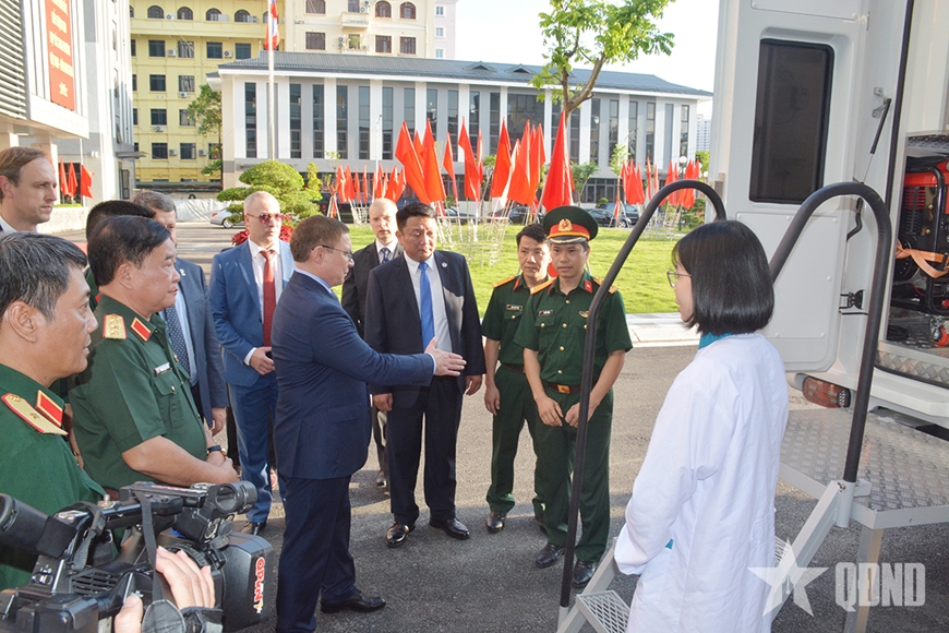 | Các đại biểu tham quan xe xét nghiệm lưu động do Liên bang Nga tài trợ. |