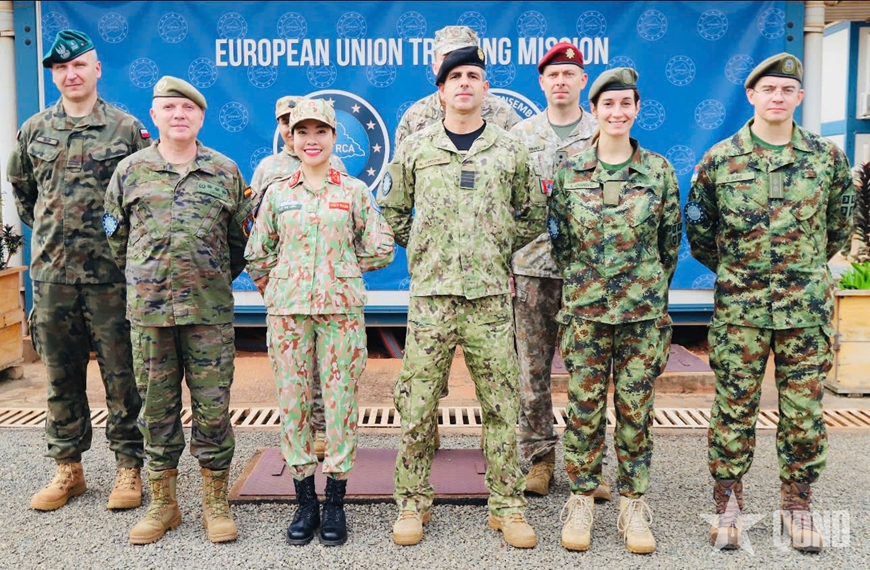 Trước khi nhận nhiệm vụ tại Brussels, Thượng tá Vũ Thị Liên đã có hai năm công tác tại Phái bộ Huấn luyện của EU tại Cộng hòa Trung Phi (EUTM RCA), trực tiếp tham gia tư vấn và điều phối huấn luyện cho lực lượng sở tại. Thực tiễn tại địa bàn xung đột giúp chị tích lũy kinh nghiệm chuyên môn và hiểu sâu hơn mối liên hệ giữa hoạch định chính sách, xây dựng năng lực và mục tiêu ổn định lâu dài.