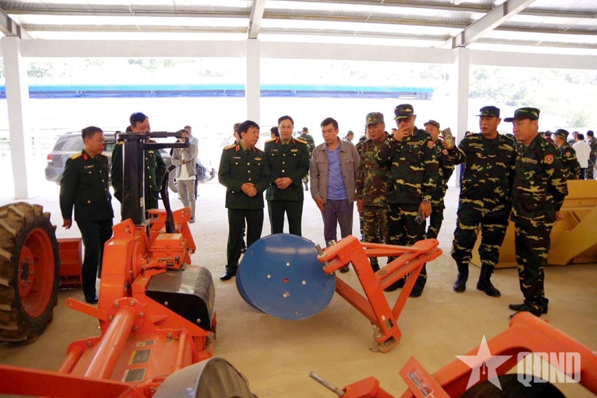 | Lãnh đạo Quân khu 2 và Bộ Quốc phòng Lào kiểm tra các hạng mục nằm trong dự án. |