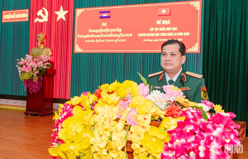 Ngày 30-1, tại tỉnh An Giang, Quân khu 9 tổ chức bế mạc lớp tập huấn giúp bạn chuyên ngành Đặc công cho sĩ quan Bộ tư lệnh Cảnh vệ, Quân đội Hoàng gia Campuchia khóa 22 năm 2025.
