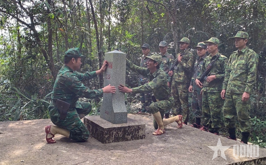 | Đội hình tuần tra hai đơn vị bên mốc quốc giới 531. |