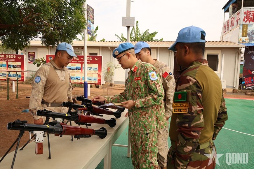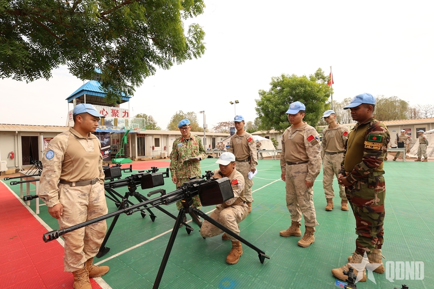 | Kiểm tra các trang thiết bị, vũ khí của đơn vị Trung Quốc trong đợt kiểm tra đánh giá năng lực. Ảnh: Nhân vật cung cấp |