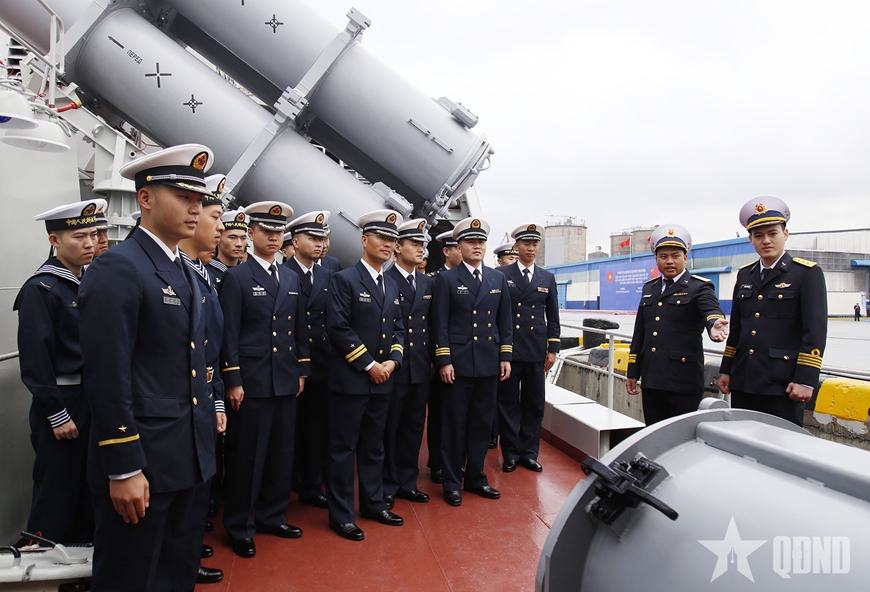 Các sĩ quan, thủy thủ Hải quân Trung Quốc tham quan Tàu 015-Trần Hưng Đạo.
