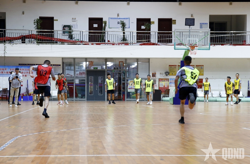 | Các vận động viên không chuyên của hải quân hai nước thử tài ném bóng rổ. |
