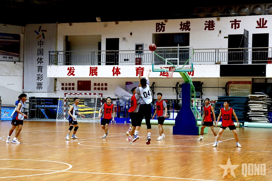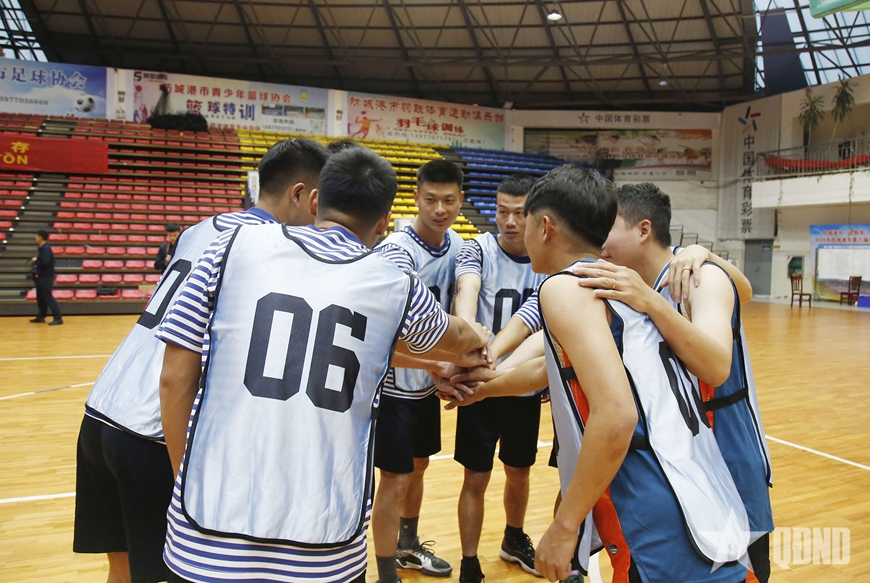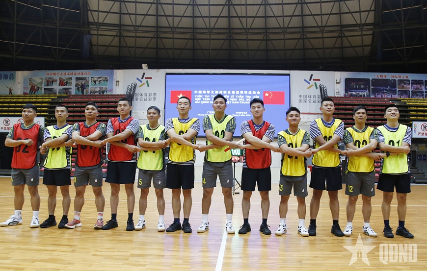 | Sĩ quan, thủy thủ hai bên tập trung tại khu thi đấu thể thao của cảng Phòng Thành để cổ vũ cho đồng đội. |