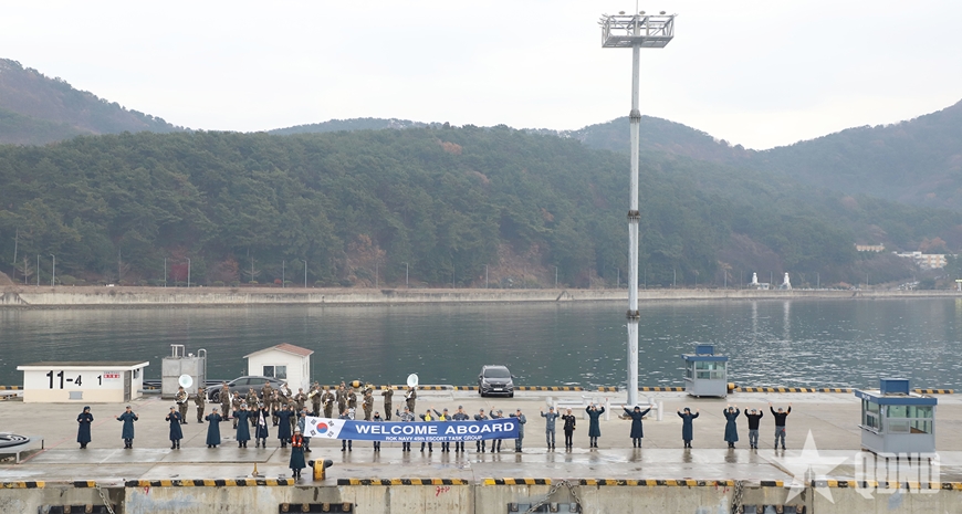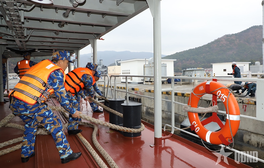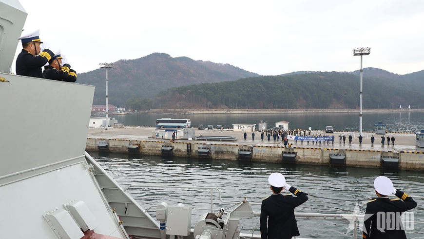 | Hải quân Hàn Quốc chào mừng đoàn công tác và Tàu 015 - Trần Hưng Đạo. |