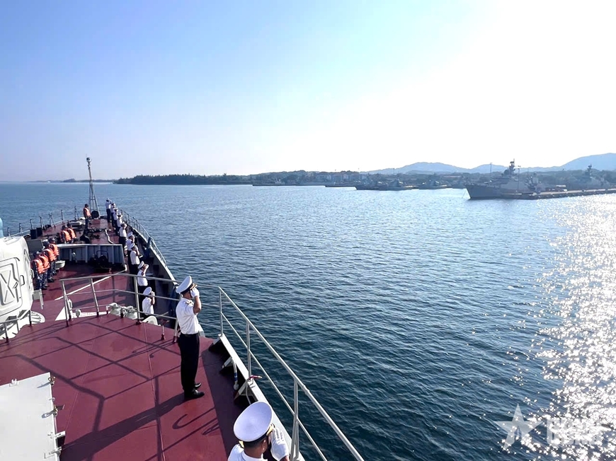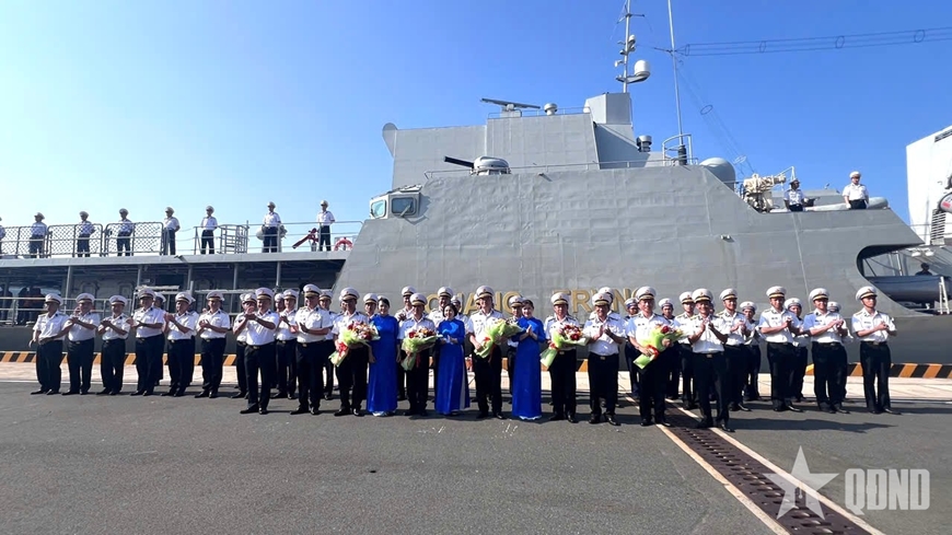 | Lễ đón Tàu 016-Quang Trung và đoàn công tác. Ảnh: NAM LONG |