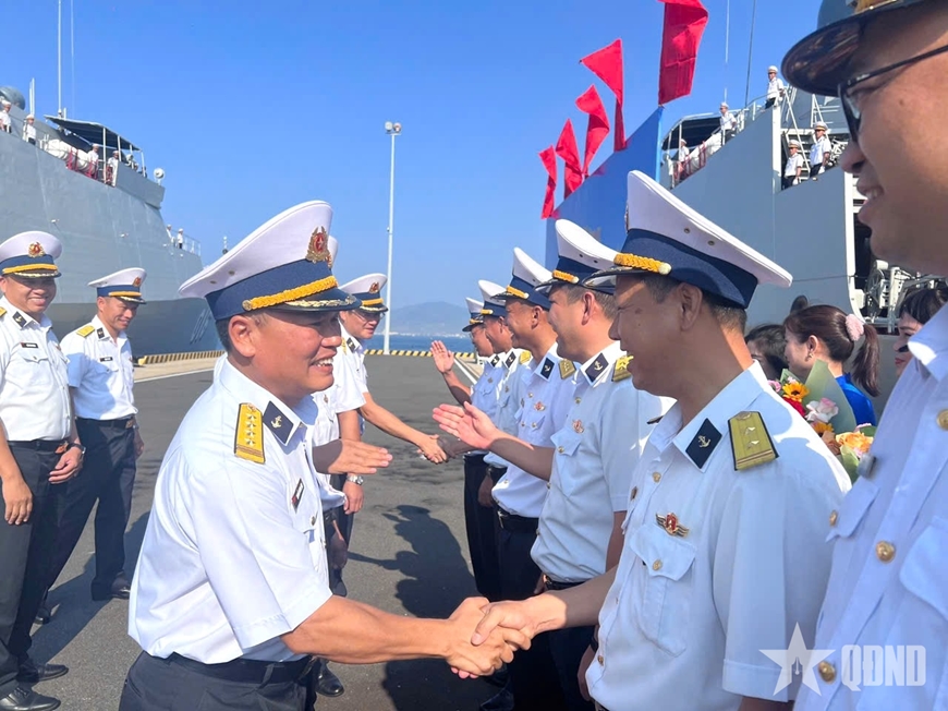 Quang cảnh lễ đón Tàu 016-Quang Trung và đoàn công tác. Ảnh: NAM LONG