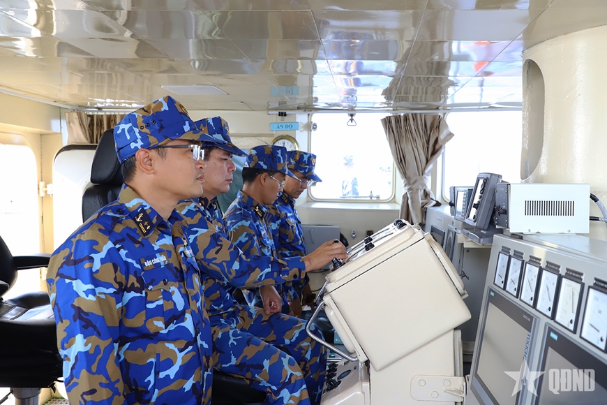 | Cán bộ, chiến sĩ Tàu 17 đưa tàu vào vị trí neo theo kế hoạch. |