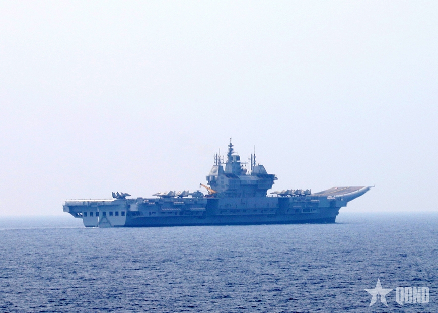 | Tàu sân bay INS Vikrant của nước chủ nhà với nhiều vũ khí, trang bị kỹ thuật hiện đại là nơi đặt sở chỉ huy diễn tập. |