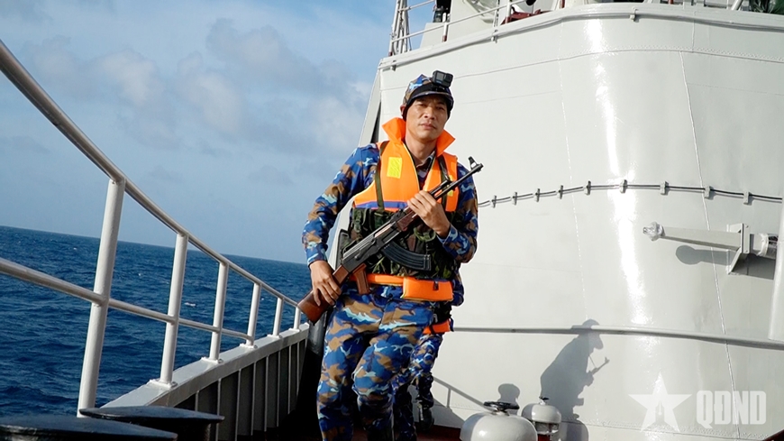 Trên từng vị trí chiến đấu, các tổ cơ động thường xuyên báo cáo quân số, tình trạng sẵn sàng, duy trì liên lạc thông suốt với Đài chỉ huy. Ở khu vực mạn sau, một tổ khác triển khai các biện pháp ngăn chặn bằng phương tiện phi sát thương như vòi phun nước áp lực cao, gậy chuyên dụng, phối hợp chặt chẽ với các mũi tiến công khác nhằm chia cắt, làm suy yếu ý đồ tiếp cận của cướp biển.