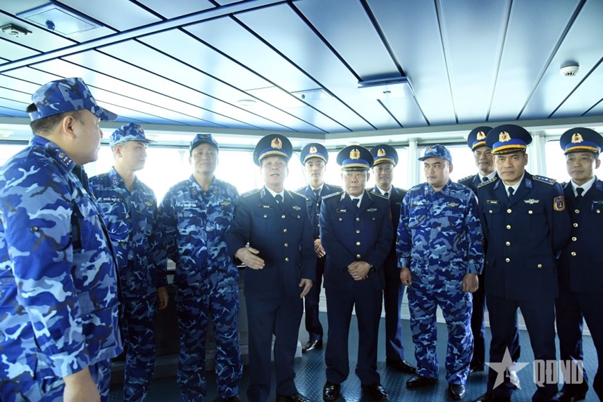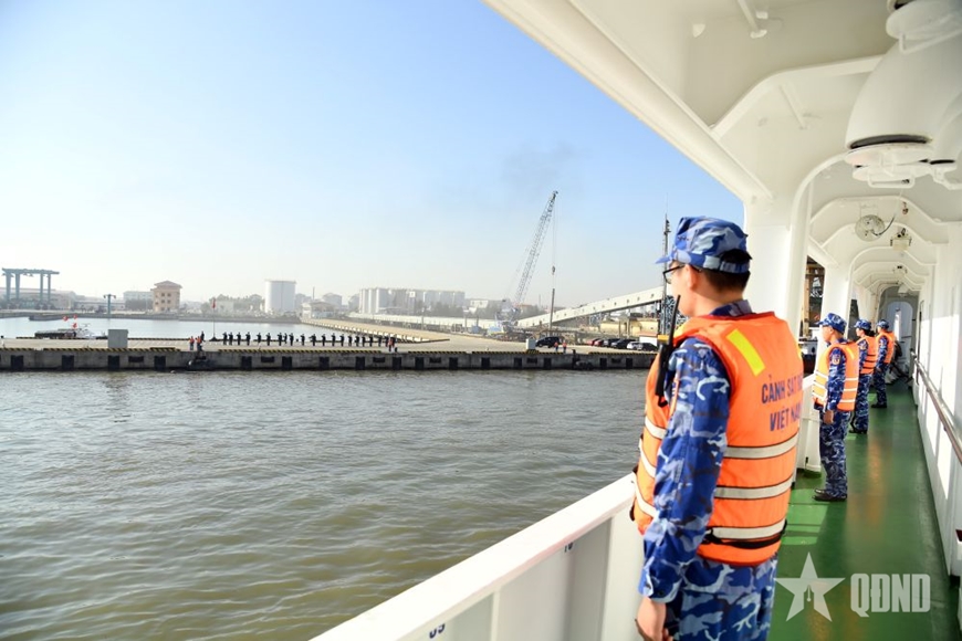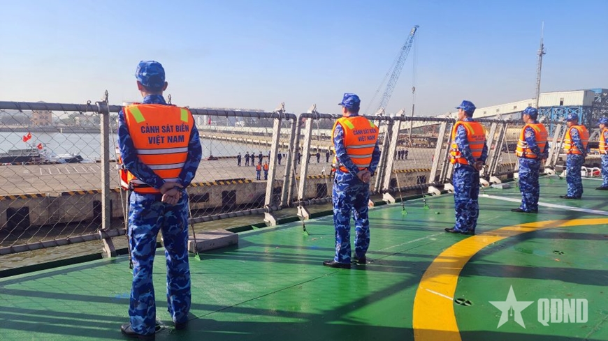 Thiếu tướng Trần Văn Thơ, Tư lệnh Vùng Cảnh sát biển 1; Thiếu tướng Trần Văn Hậu, Chính ủy Vùng Cảnh sát biển 1 cùng các đồng chí trong Đảng ủy, thủ trưởng Bộ tư lệnh Vùng Cảnh sát biển 1; chỉ huy các cơ quan, đơn vị trực tiếp đón và chúc mừng đoàn công tác tại cảng.