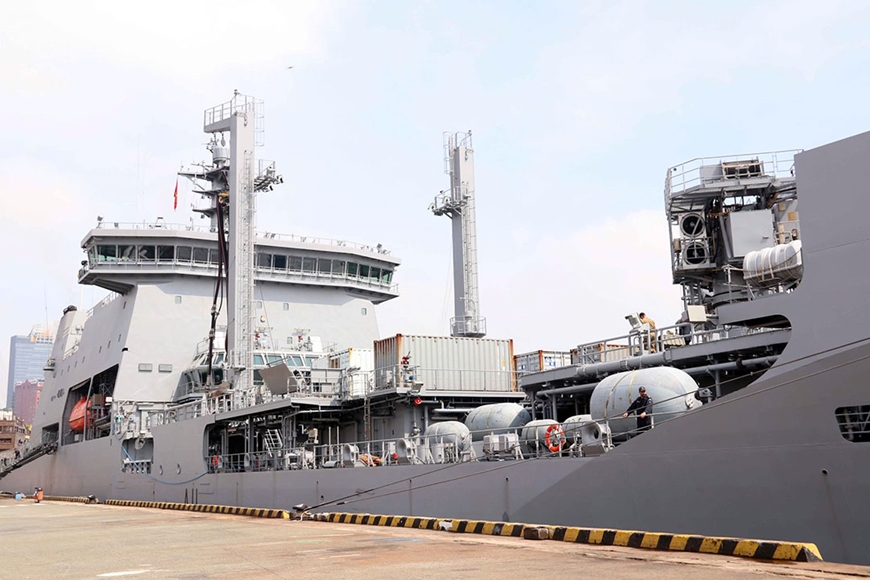 Tàu hải quân HMNZS Aotearoa cập bến cảng quốc tế Nhà Rồng-Khánh Hội. |