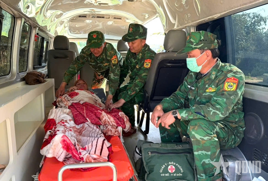 Đồn Biên phòng Ga Ry hỗ trợ đưa sản phụ người Lào đến Trung tâm y tế khu vực Tây Giang.