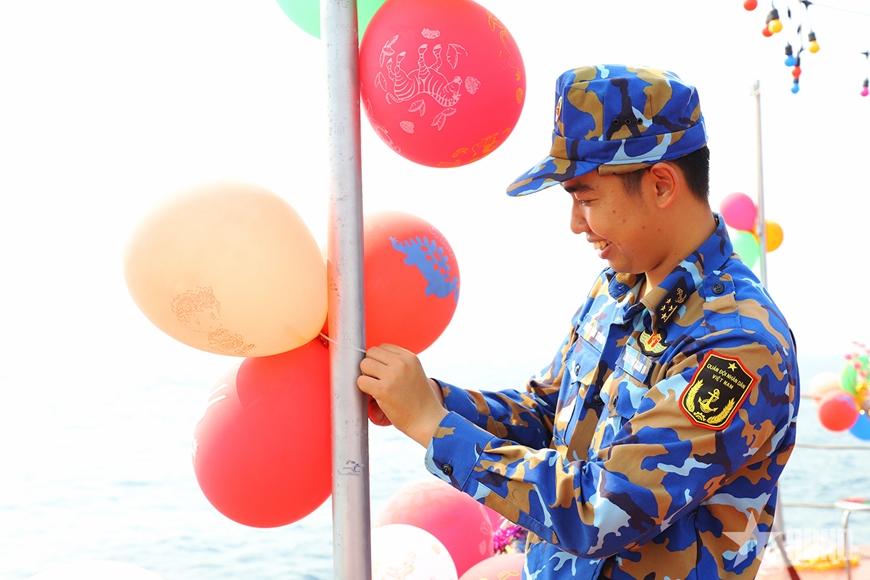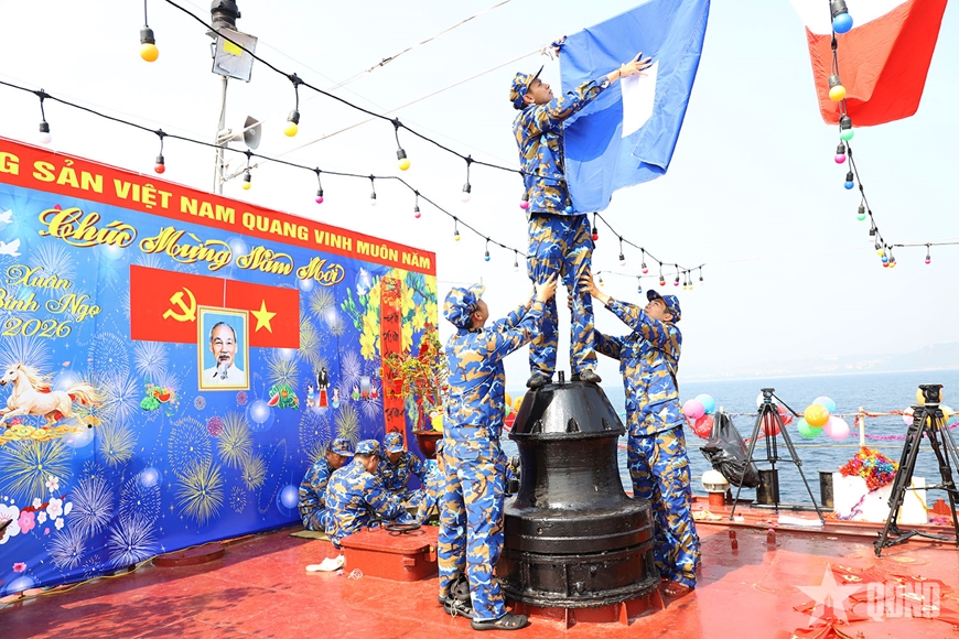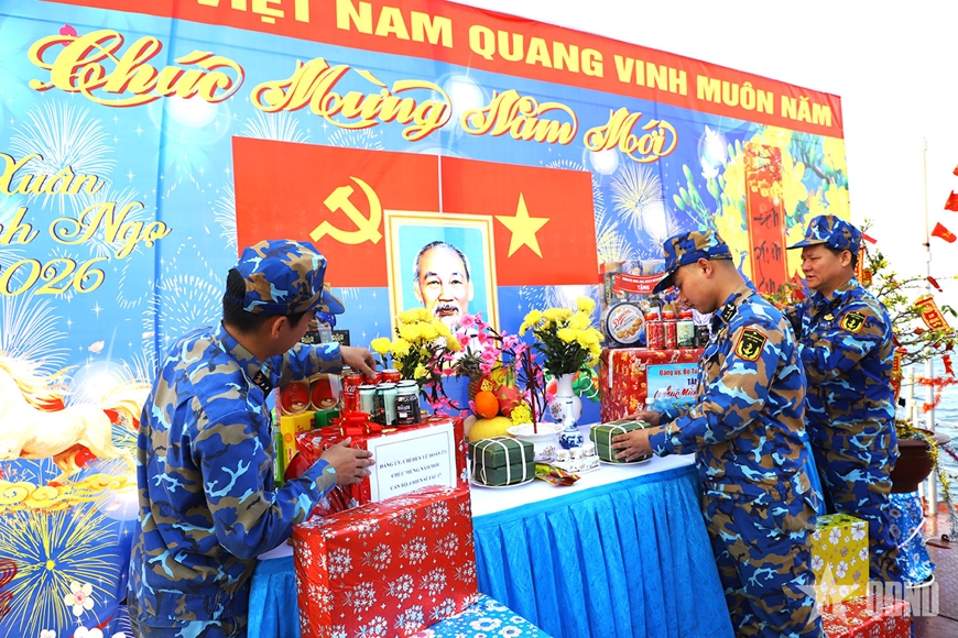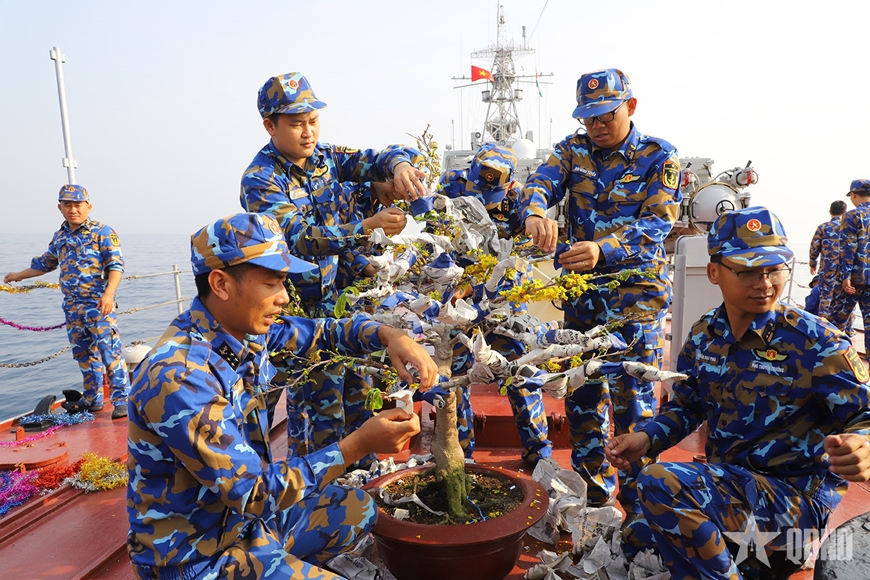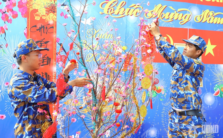 | Cán bộ, chiến sĩ Tàu 17 trang trí khu vực đón Tết Nguyên đán Bính Ngọ 2026. |