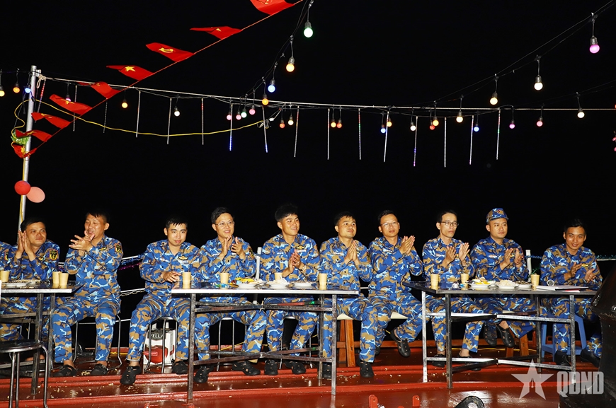 | Trong thời khắc Giao thừa, cán bộ, chiến sĩ cùng đếm ngược và đồng thanh chúc mừng năm mới. |