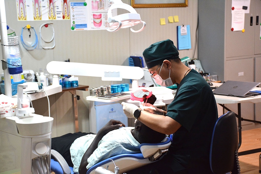 | Khám răng miệng cho người bệnh tại Bệnh viện dã chiến cấp 2 số 7. |