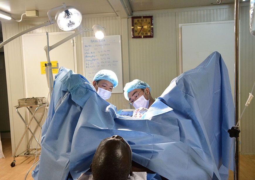 Khi tôi trao đổi với Thiếu tá, TS Trần Đức Tài cũng trùng thời điểm các y, bác sĩ BVDC 2.7 vừa hoàn thành hai ca mổ “xé rào” cho hai bệnh nhân người Nam Sudan và Ghana trong một buổi sáng.