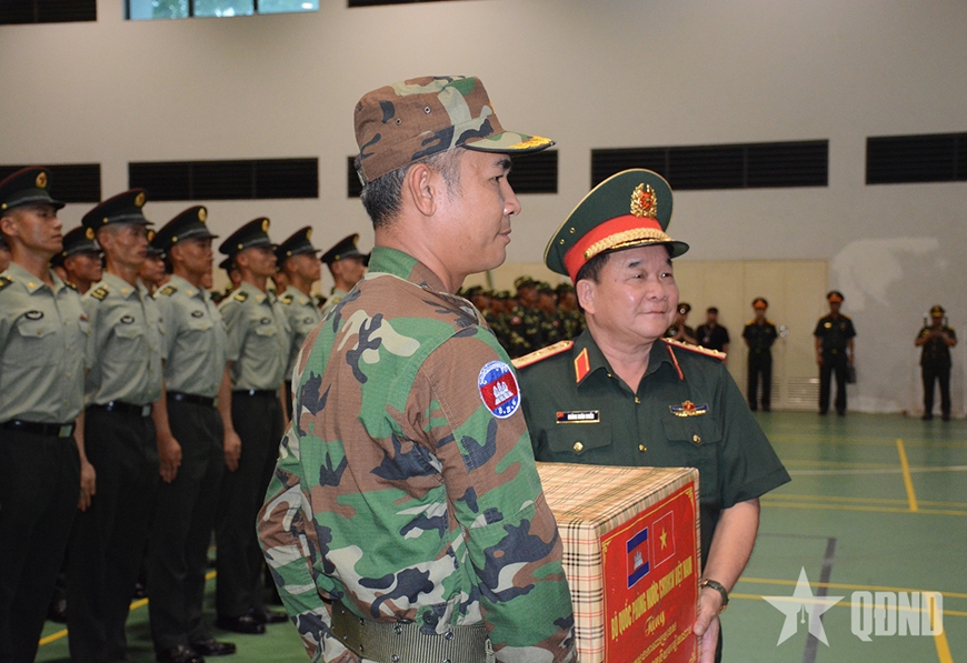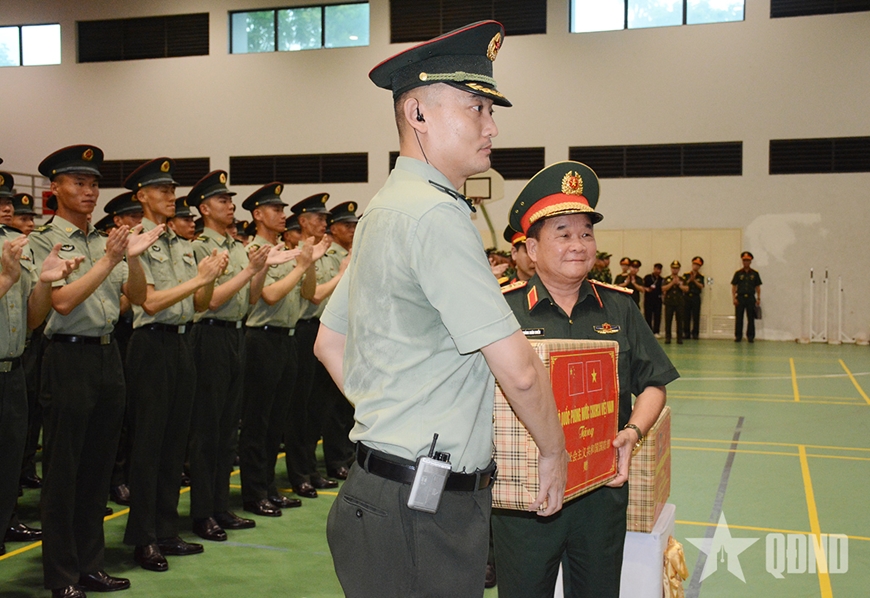 Thượng tướng Hoàng Xuân Chiến tặng quà các đoàn. |