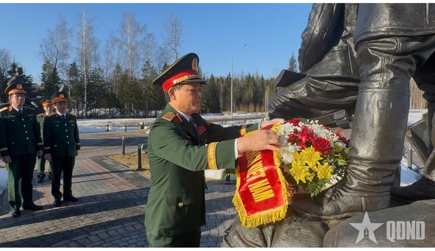 | Thượng tướng Phạm Trường Sơn đặt hoa tại Tượng đài các chiến sĩ tình nguyện quốc tế Việt Nam tham gia chiến đấu bảo vệ Thủ đô Moscow trong Chiến tranh Vệ quốc vĩ đại. |