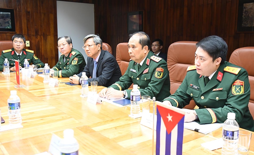 Thượng tướng Álvaro López Miera nhiệt liệt chào mừng Thượng tướng Phùng Sĩ Tấn và đoàn đại biểu Bộ Quốc phòng Việt Nam tháp tùng Phó thủ tướng thăm, làm việc tại Cuba, trong bối cảnh hai nước kỷ niệm 65 năm Ngày thiết lập quan hệ ngoại giao (2-12-1960 / 2-12-2025). Chia sẻ về những khó khăn, thách thức mà Cuba phải đối mặt, Thượng tướng Álvaro López Miera cảm ơn Việt Nam đã luôn đồng hành, hỗ trợ Cuba; mong muốn Quân đội hai nước tiếp tục duy trì và đẩy mạnh hợp tác trên các lĩnh vực mà hai bên có khả năng và nhu cầu, qua đó góp phần củng cố quan hệ hai nước, hai Quân đội.