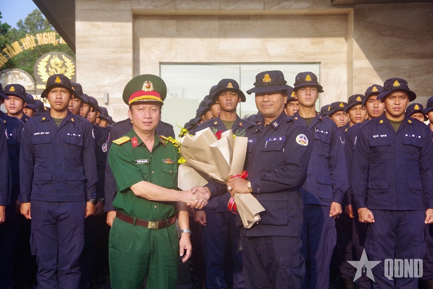 Đoàn Quân đội Hoàng gia Campuchia tạm biệt Việt Nam để lên đường về nước.