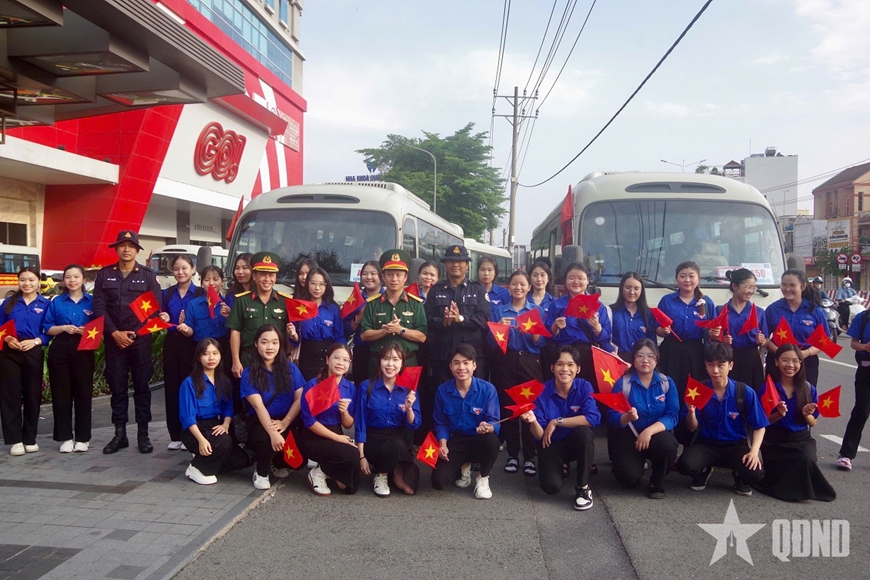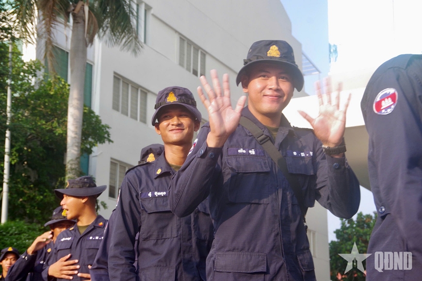 Đông đảo thanh niên, sinh viên Việt Nam đã đến tiễn đoàn Quân đội Hoàng gia Campuchia.