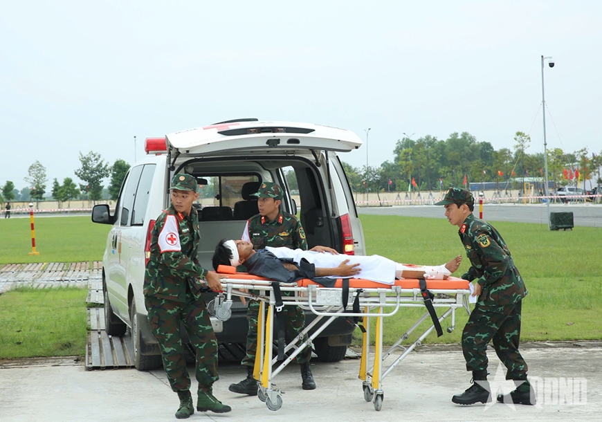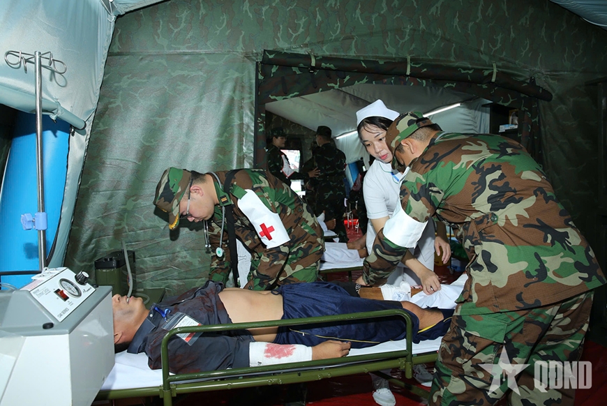 | Tổng duyệt diễn tập quân y. |