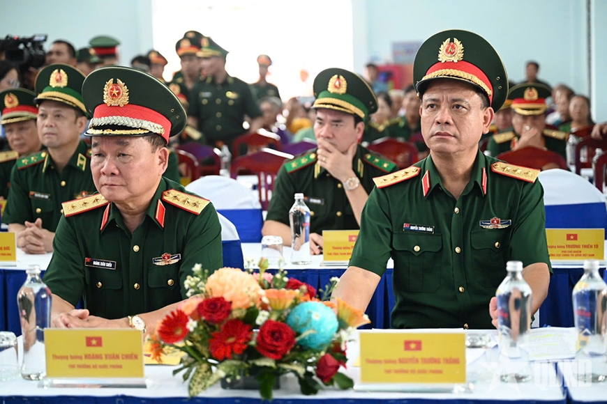 | Thượng tướng Hoàng Xuân Chiến và Thượng tướng Nguyễn Trường Thắng cùng các đại biểu tổng duyệt tại địa điểm tổ chức kết nghĩa cụm dân cư hai bên biên giới (ấp Long Cường, xã Long Thuận). |