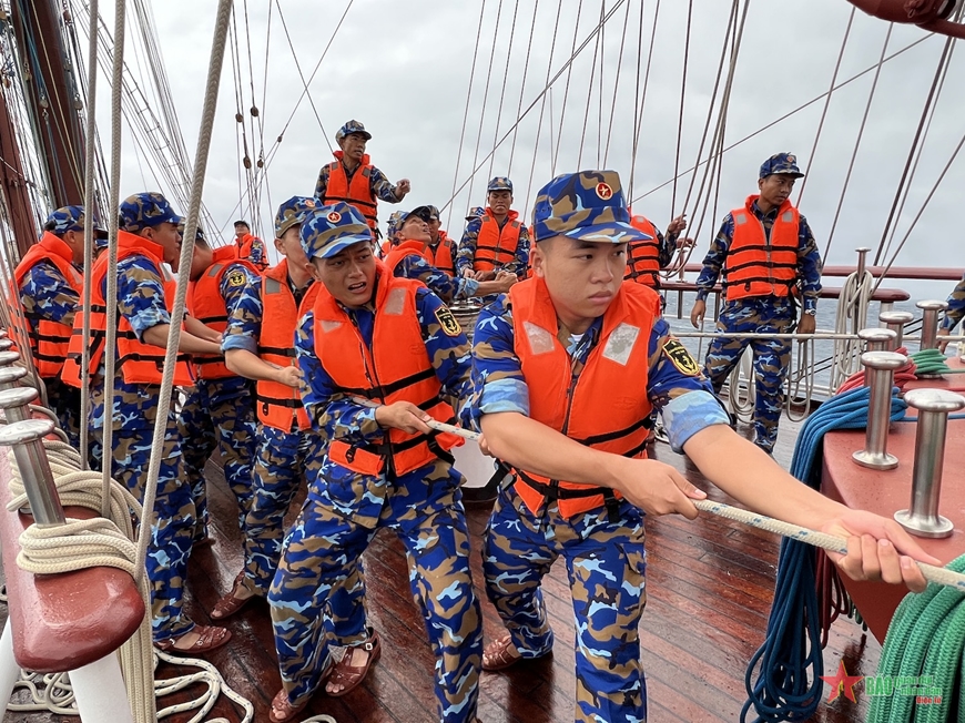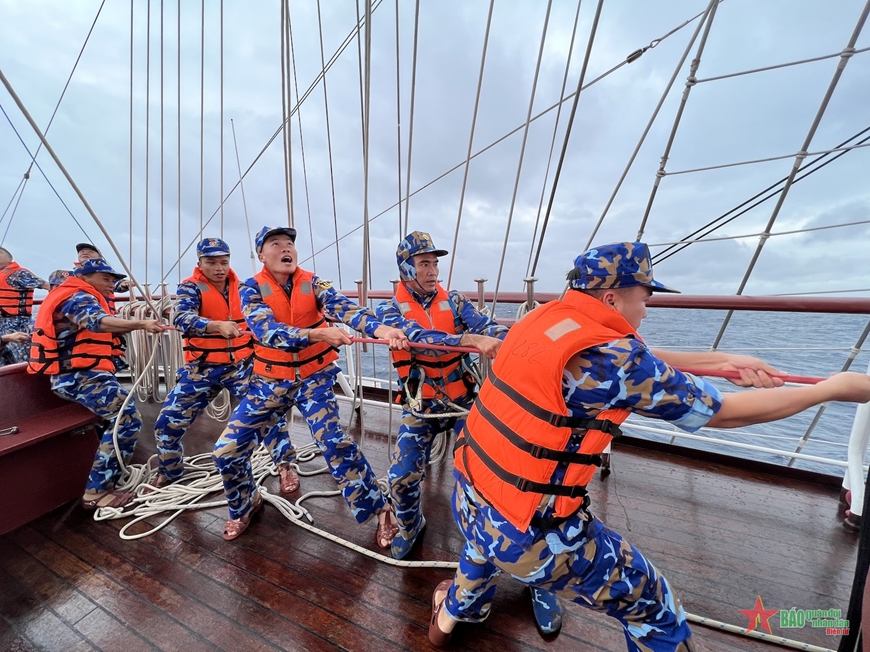 Theo Đại úy Đoàn Tử Nguyên Ngọc, Phó Thuyền trưởng, kíp tàu tạo điều kiện nhiều nhất có thể để các học viên trải nghiệm tối đa các nhiệm vụ và vị trí tác nghiệp trên tàu, từ những công việc hậu cần, phục vụ cho đến những nhiệm vụ chuyên môn, như trực máy, kéo buồm, đi ca, thông tin liên lạc với các tàu hay qua các tuyến hàng hải quốc tế, lái tàu, quan sát phát hiện mục tiêu trên biển và thao tác trên vũ khí, trang bị kỹ thuật (VKTBKT)… Cán bộ tàu chỉ làm nhiệm vụ quan sát, giám sát an toàn. Chưa làm được, làm đúng yêu cầu học viên làm lại. Các học viên được tham gia chuyến công tác đối ngoại và huấn luyện đi biển đường dài đều là những người tiêu biểu, đạt kết quả học tập xuất sắc, có trình độ ngoại ngữ tốt, được chọn từ các khoa, ngành, nên đáp ứng tốt các mục tiêu và yêu cầu của nội dung huấn luyện.