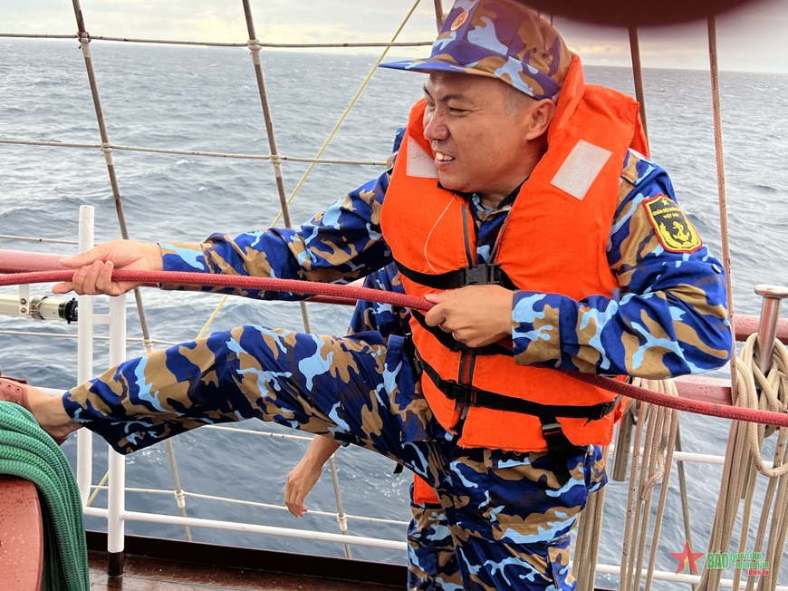 Đồng chí chia sẻ: “Dù đã chuẩn bị tâm lý và sức khỏe từ trước để sẵn sàng đương đầu với những thử thách trong chuyến đi, nhưng đối mặt với thực tế nhiệm vụ trên tàu quả là đặc biệt. Những cơn gió kéo theo sự khô khốc của biển cả khiến khuôn mặt ai nấy đều sạm đi. Đối với tôi, ngày đầu tiên làm quen với ca trực ở khoang máy quả là khó quên. Kết thúc ca trực lúc 23 giờ đêm, tranh thủ chợp mắt mà trong đầu toàn tiếng bong bong của máy chạy, ko tài nào ngủ nổi”.