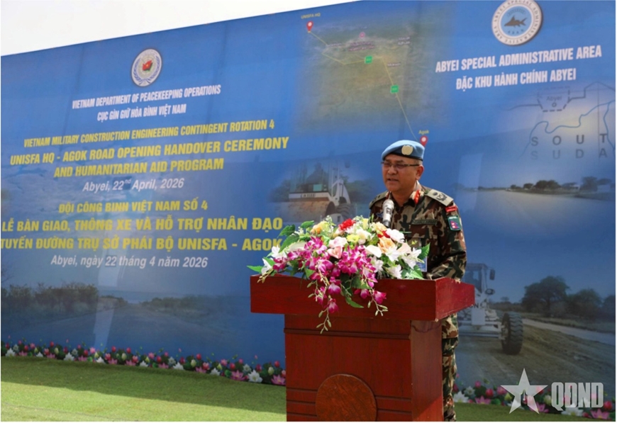 | Thiếu tướng Ganesh Kumar Shrestha, Tư lệnh Phái bộ UNISFA phát biểu tại buổi lễ. |
