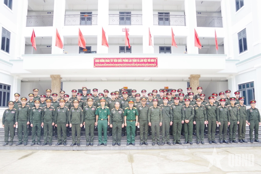 Sau buổi làm việc, Đại tá Viengxay Soulivong đã đến thăm, động viên học viên quân sự Lào đang học tập tại Nhà trường.