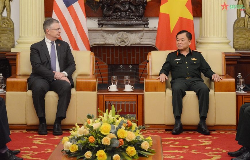 Thượng tướng Hoàng Xuân Chiến trao đổi với Trợ lý Ngoại trưởng Hoa Kỳ Daniel Kritenbrink.