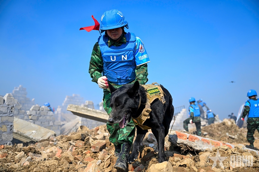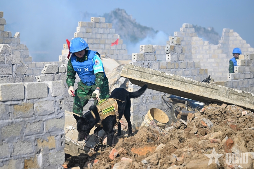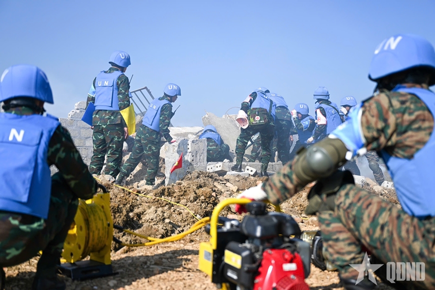 Nhận nhiệm vụ từ cấp trên, lực lượng của ta nhanh chóng phổ biến nhiệm vụ; sử dụng flycam thu thập thông tin, hình ảnh để đánh giá chính xác mức độ thiệt hại và cơ động đến hiện trường. Các lực lượng của Đội cứu sập tham gia gồm: Tổ trinh sát Công binh; Tổ chó nghiệp vụ; 2 Tổ cứu sập; Tổ Quân y. Sau khi trinh sát hiện trường sập đổ, sơ bộ đánh giá tình hình, các tổ tại thực địa khẩn trương triển khai lực lượng, phương tiện cứu người mắc kẹt trong khu vực sập đổ, có kết hợp sử dụng chó nghiệp vụ để tìm kiếm, đánh dấu các vị trí nghi ngờ có người bị nạn. Sau khi phát hiện các nạn nhân, Tổ cứu sập mở lối vào giải cứu, đánh giá sơ bộ tình trạng nạn nhân và phối hợp Tổ quân y đưa nạn nhân ra ngoài. Đối với bệnh nhân bị thương nặng, Sở Chỉ huy Phái bộ quyết định điều động một máy bay trực thăng cùng Tổ vận chuyển y tế đường không (AMET) để cấp cứu và vận chuyển y tế đường không. Bệnh viện dã chiến cấp 1 của Đội Công binh đã phối hợp với Tổ AMET tiến hành quy trình cấp cứu và vận chuyển y tế đường không theo đúng quy trình.