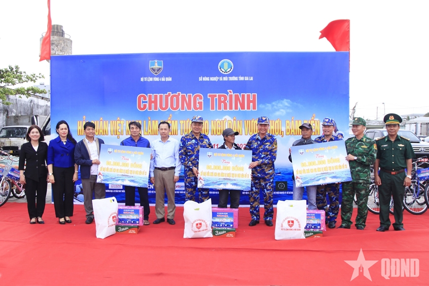 Trong khuôn khổ chương trình, Chuẩn đô đốc Nguyễn Anh Tuấn, Tư lệnh Vùng 4 Hải quân đã đến thăm, tặng quà một số gia đình chính sách; trao kinh phí hỗ trợ xây dựng nhà tình nghĩa cho 3 gia đình ngư dân bị ảnh hưởng nặng nề của bão số 13 (mỗi gia đình 60 triệu đồng).