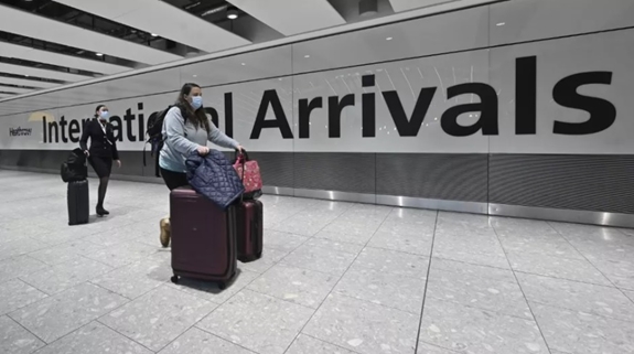 | Du khách nước ngoài đến sân bay Heathrow ở London ngày 14-2-2021. Ảnh: AFP |