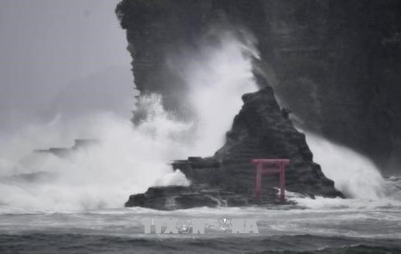Sóng biển dâng cao khi bão Jongdari đổ bộ vào vùng biển tỉnh Chiba, Nhật Bản ngày 28-7. |