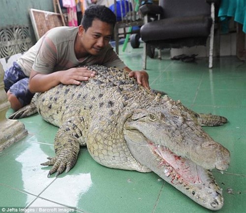 Anh Muhammad Iwan coi chú cá sấu Kojek như một thành viên trong gia đình. Ảnh: Daily Mail |