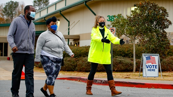 | Cử tri đang được hướng dẫn tại điểm bỏ phiếu trong cuộc bầu cử Thượng viện Mỹ bổ sung ở bang Georgia. Ảnh: AP. |