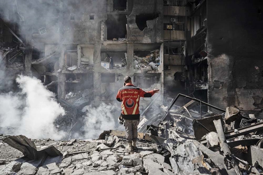 | Một người đàn ông đứng trước hiện trường tòa nhà dân cư bị Israel tấn công ở Beirut, Lebanon. Ảnh: Getty Images |