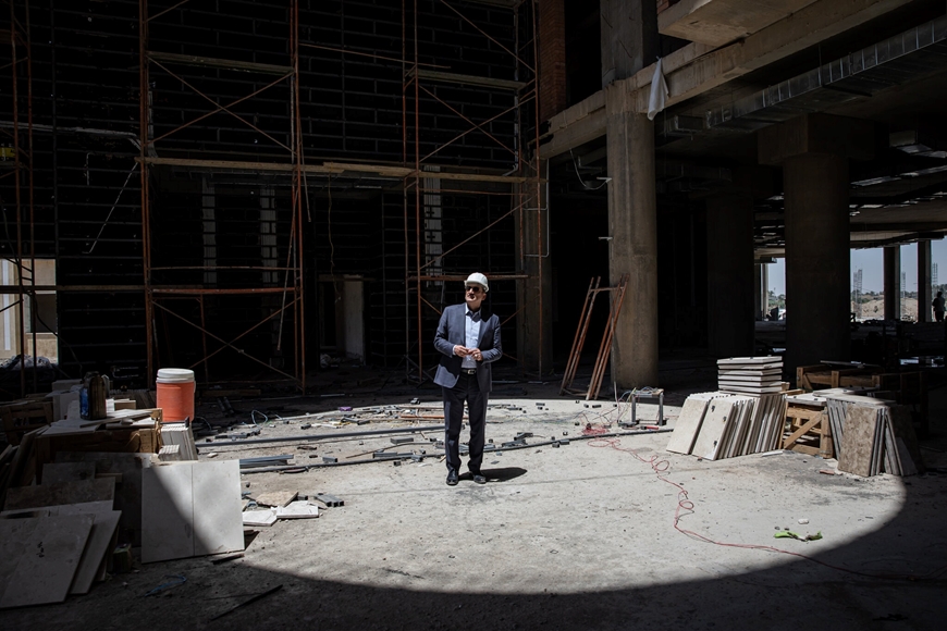 | Ông Mahdi al-Noman, Chủ tịch Ủy ban Xúc tiến đầu tư của tỉnh Anbar kiểm tra tiến độ xây dựng khách sạn hạng sang đầu tiên của địa phương này trong nhiều thập niên qua. Ảnh: The New York Times |