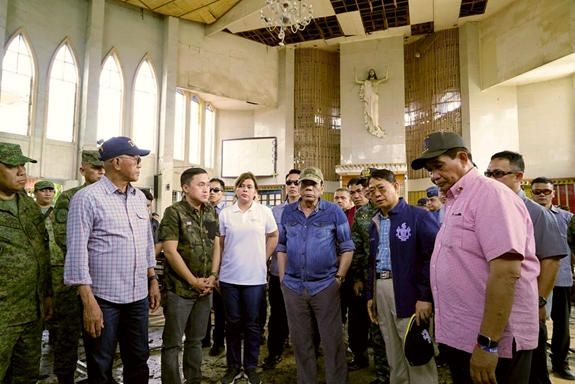 Tổng thống Philippines Rodrigo Duterte tới thăm hiện trường vụ tấn công khủng bố tại một nhà thờ ở Jolo, năm 2019. Ảnh: AP |