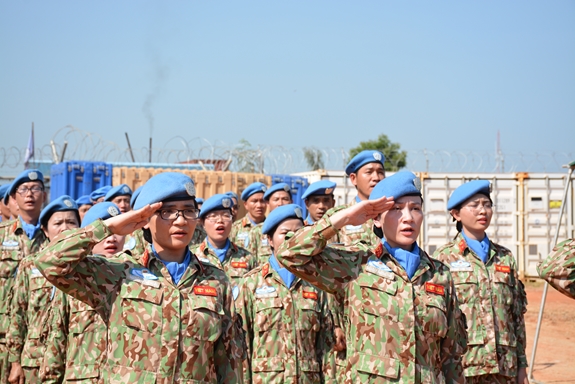 Các nữ quân nhân Quân đội nhân dân Việt Nam tham gia hoạt động Gìn giữ hòa bình tại Phái bộ Nam Sudan. Ảnh: CHÂU ANH |