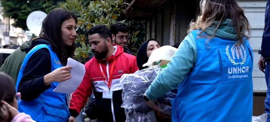 | Nhân viên UNHCR phân phát hàng cứu trợ khẩn cấp tới những người tị nạn ở Beirut, Lebanon. |