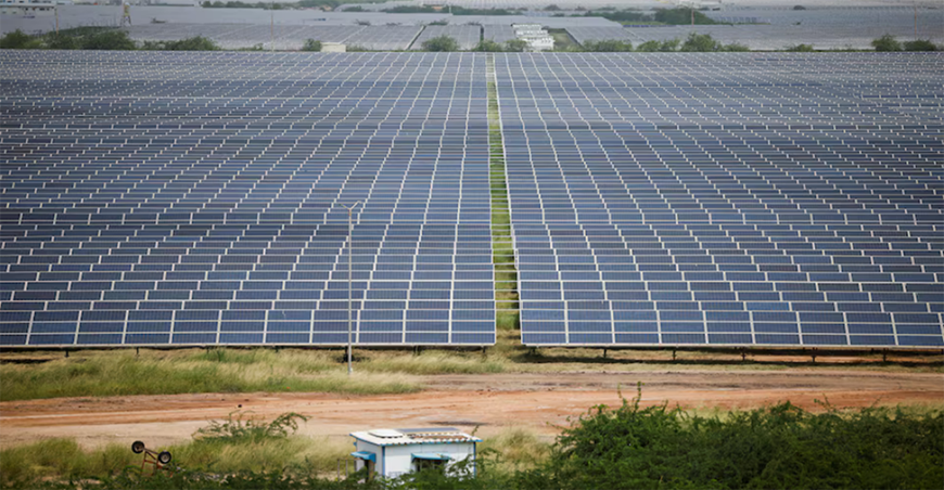 Các tấm pin năng lượng mặt trời tại Công viên năng lượng mặt trời Gujarat, bang Gujarat, Ấn Độ. Ảnh: Reuters