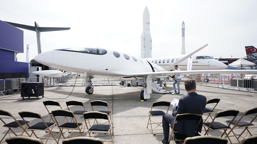 | Máy bay điện Alice của hãng Eviation được giới thiệu tại một triển lãm hàng không. Ảnh: CNN |