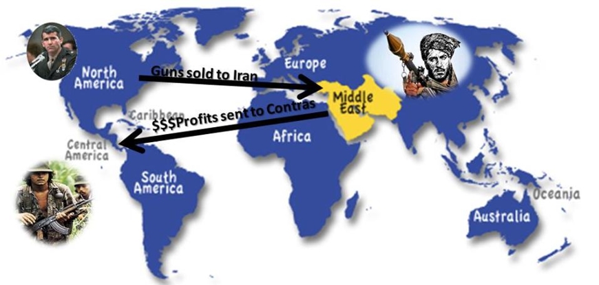 Điểm bùng nổ của bê bối Iran-Contra nằm ở chỗ: Lợi nhuận từ những thương vụ bán vũ khí cho Iran đã bị chuyển hướng trái phép để tài trợ cho lực lượng Contra ở Nicaragua, bất chấp lệnh cấm của Quốc hội Mỹ theo Đạo luật Boland Amendment (cấm CIA hoặc bất kỳ cơ quan nào khác của Mỹ hỗ trợ cho lực lượng Contra). Ảnh: apushcanvas.pbworks.com